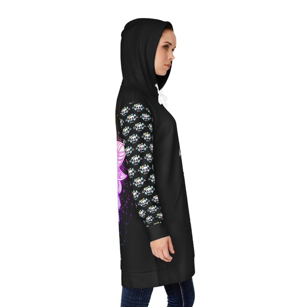 Cold days don't have to be uncomfortable or lack style anymore, thanks to this women's hoodie dress. Each hoodie dress is custom cut & sewn with a long hood that is perfect for fall, winter, and any cold day of the year. Add an all-over-print to fully customize it to taste.