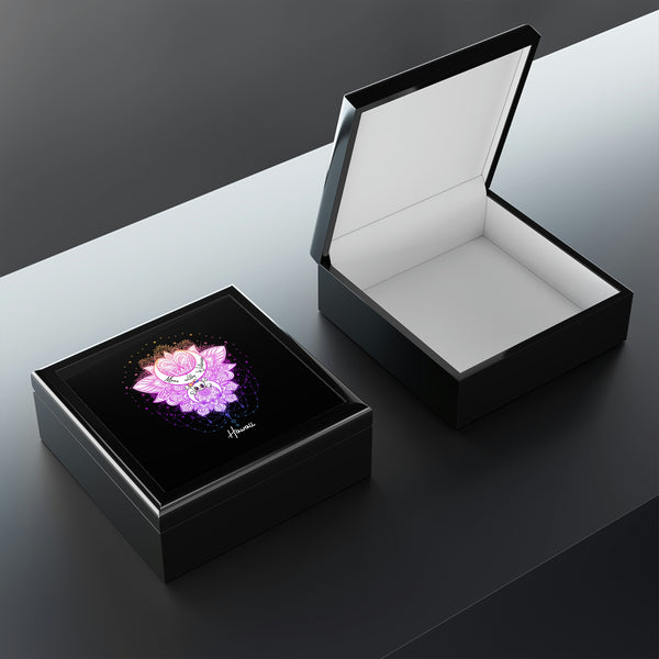 Keep all your valuables safe in custom style with this personalized jewelry box. Available in multiple colors, this jewelry box features dual hinges which lock at 90 degrees, an elegant glossy finish, and a soft interior lined with felt material.